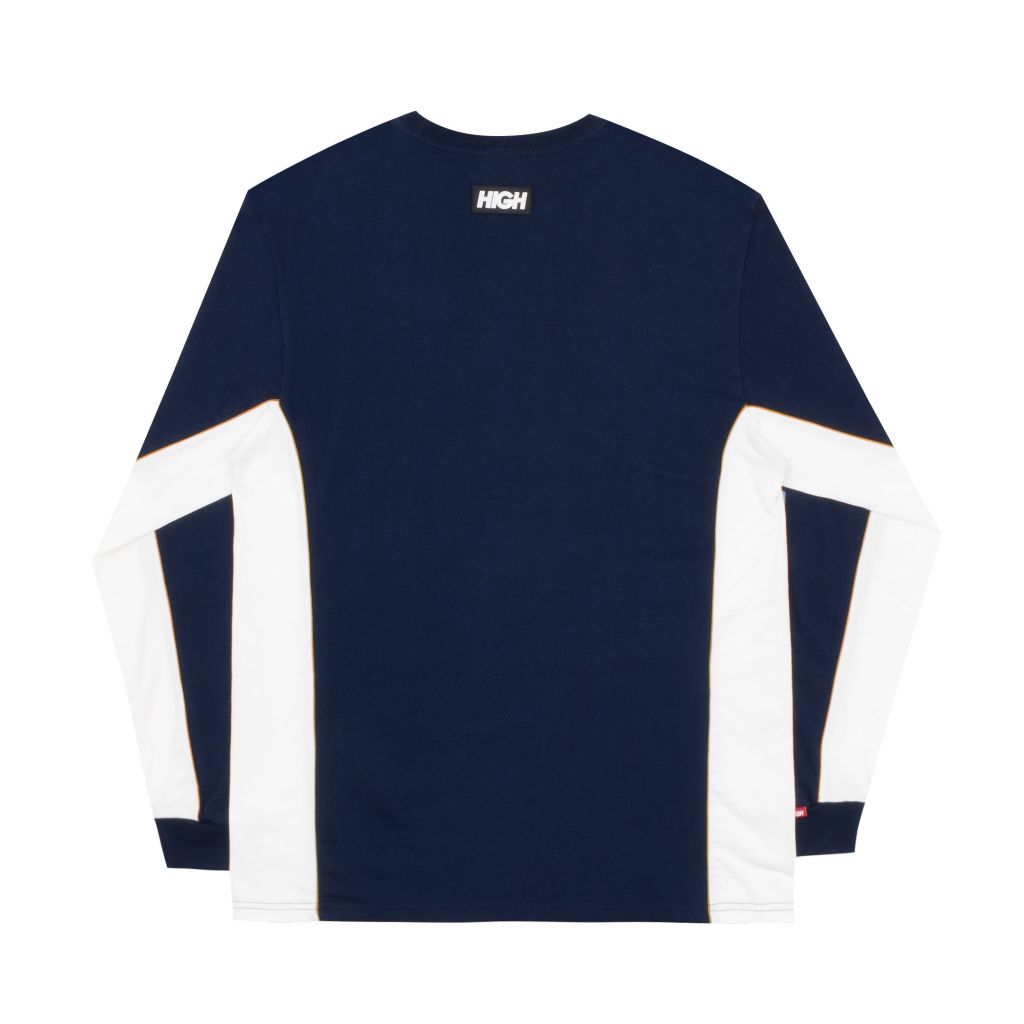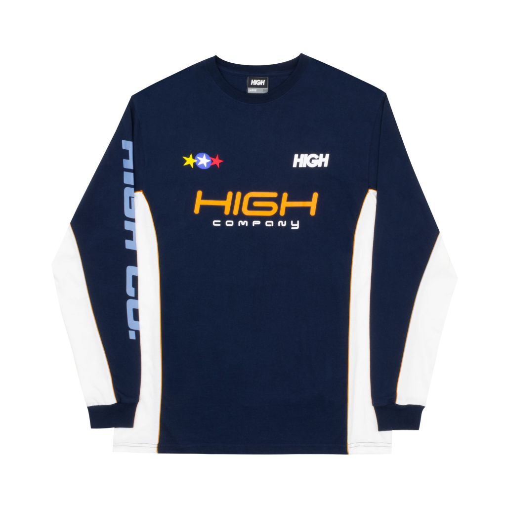 Camiseta manga longa 100% algodão com recortes com vivo e estampas em plastisol.